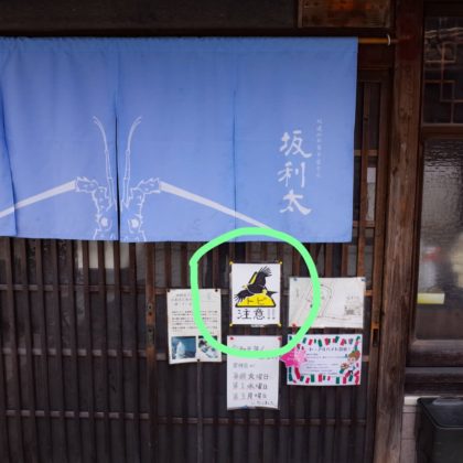 古民家を改装したとのことで町並みに溶け込んでいて一見わかりにくいけど、青い暖簾と看板が目印。