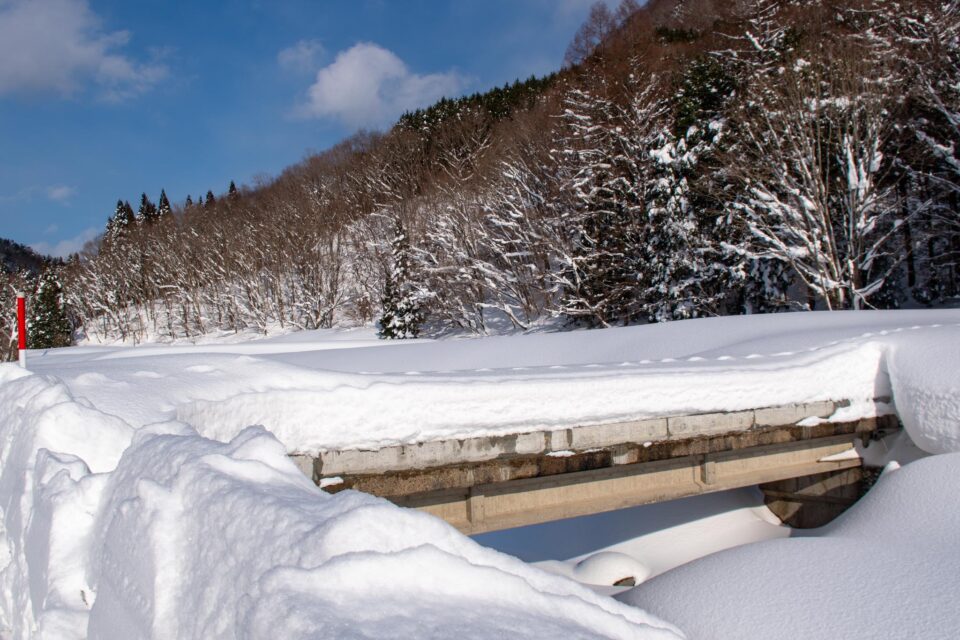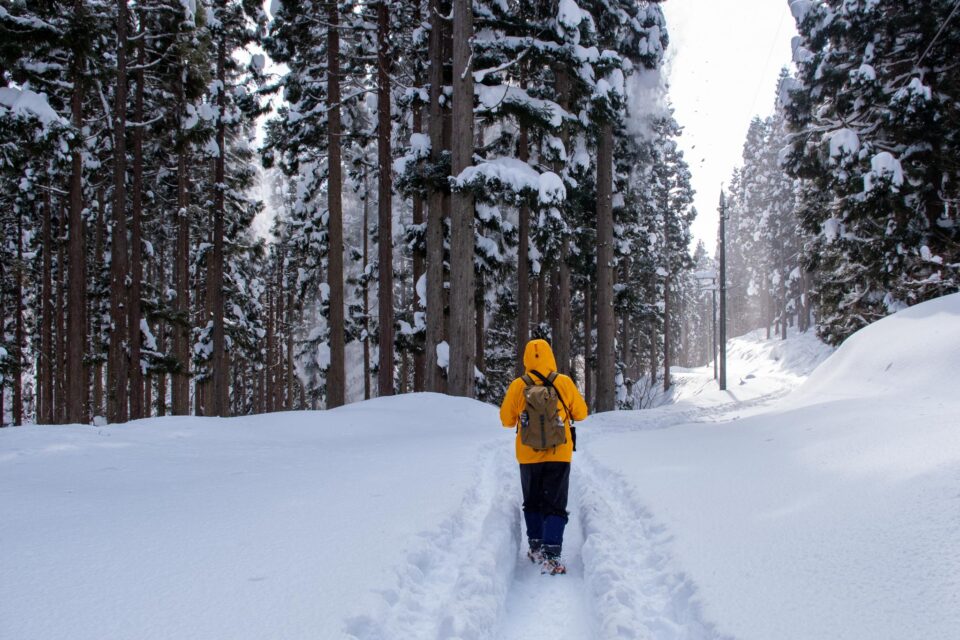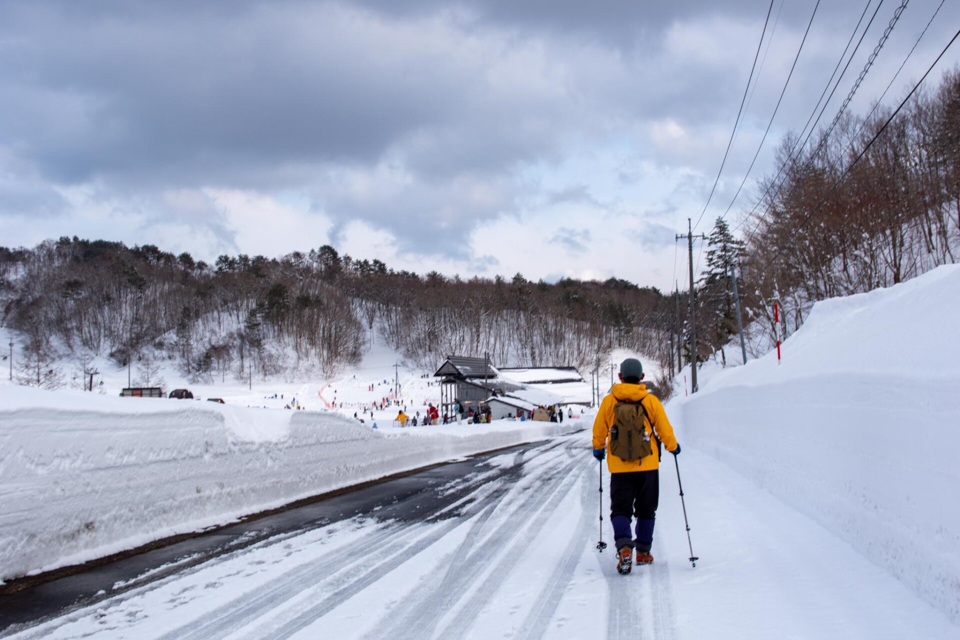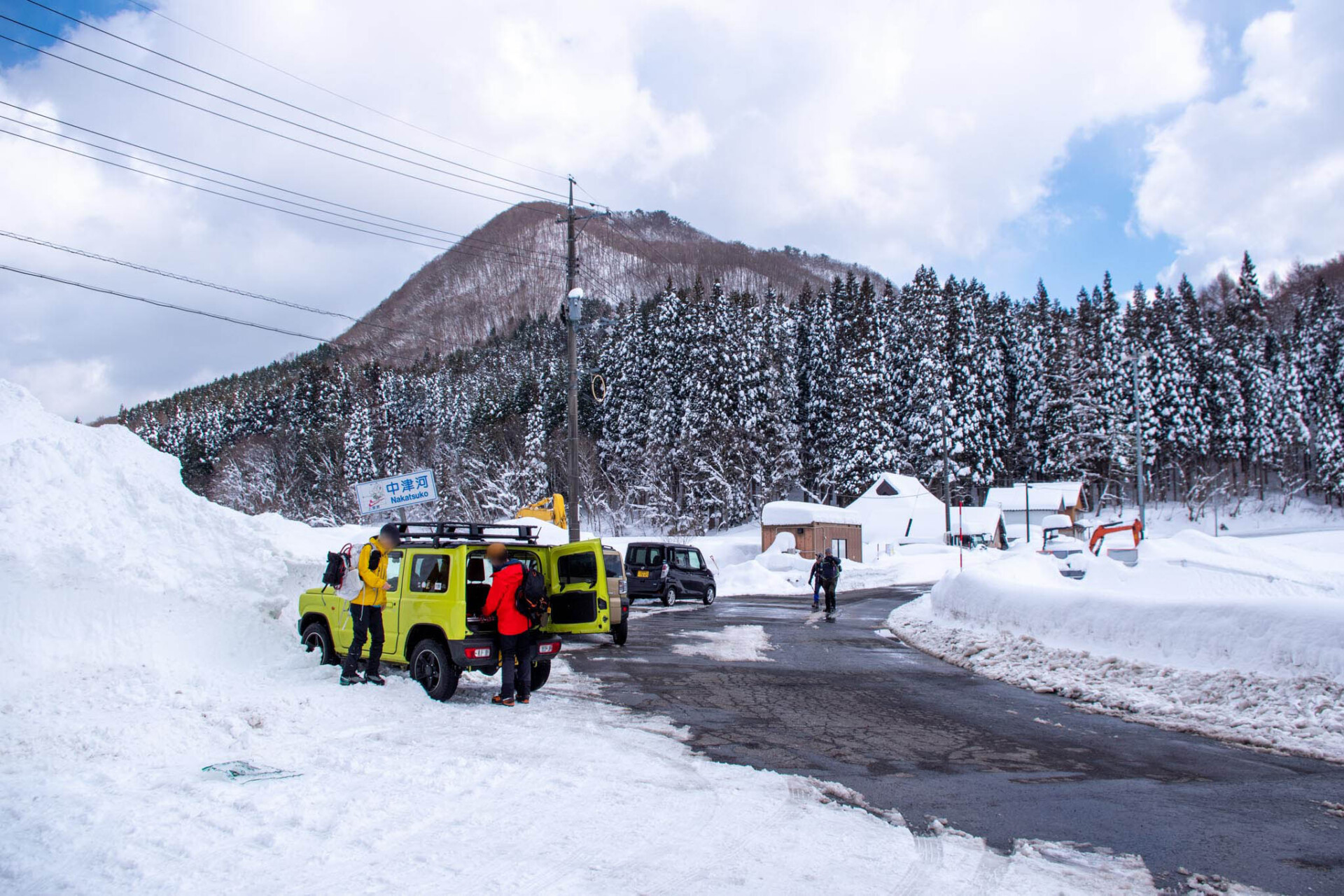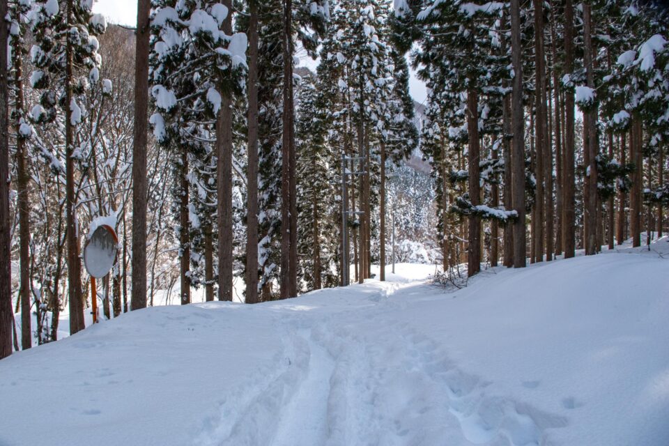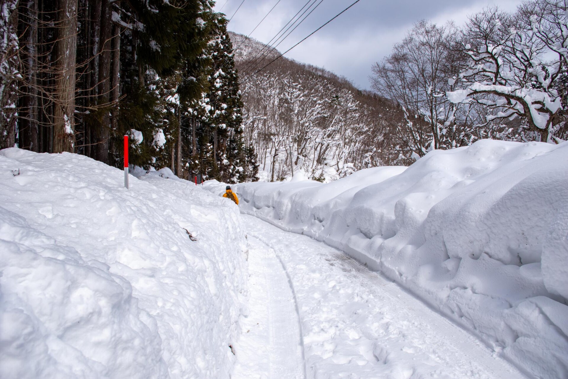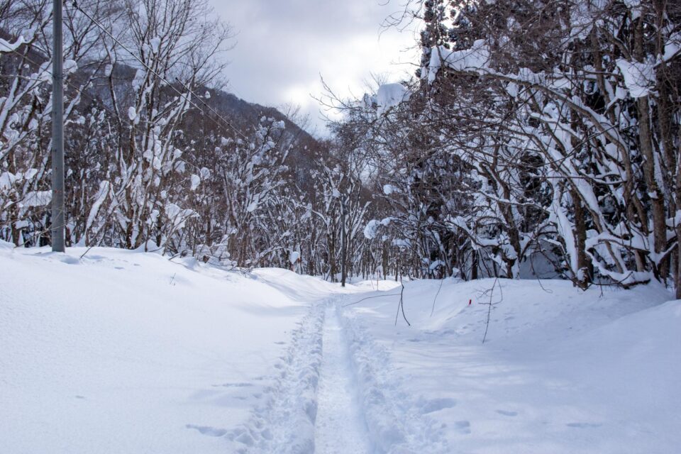 無雪期は滝のすぐ下に駐車場があるのでアクセスが容易ですが、積雪期は車道が途中から除雪されていないので車で近くまで行けません。