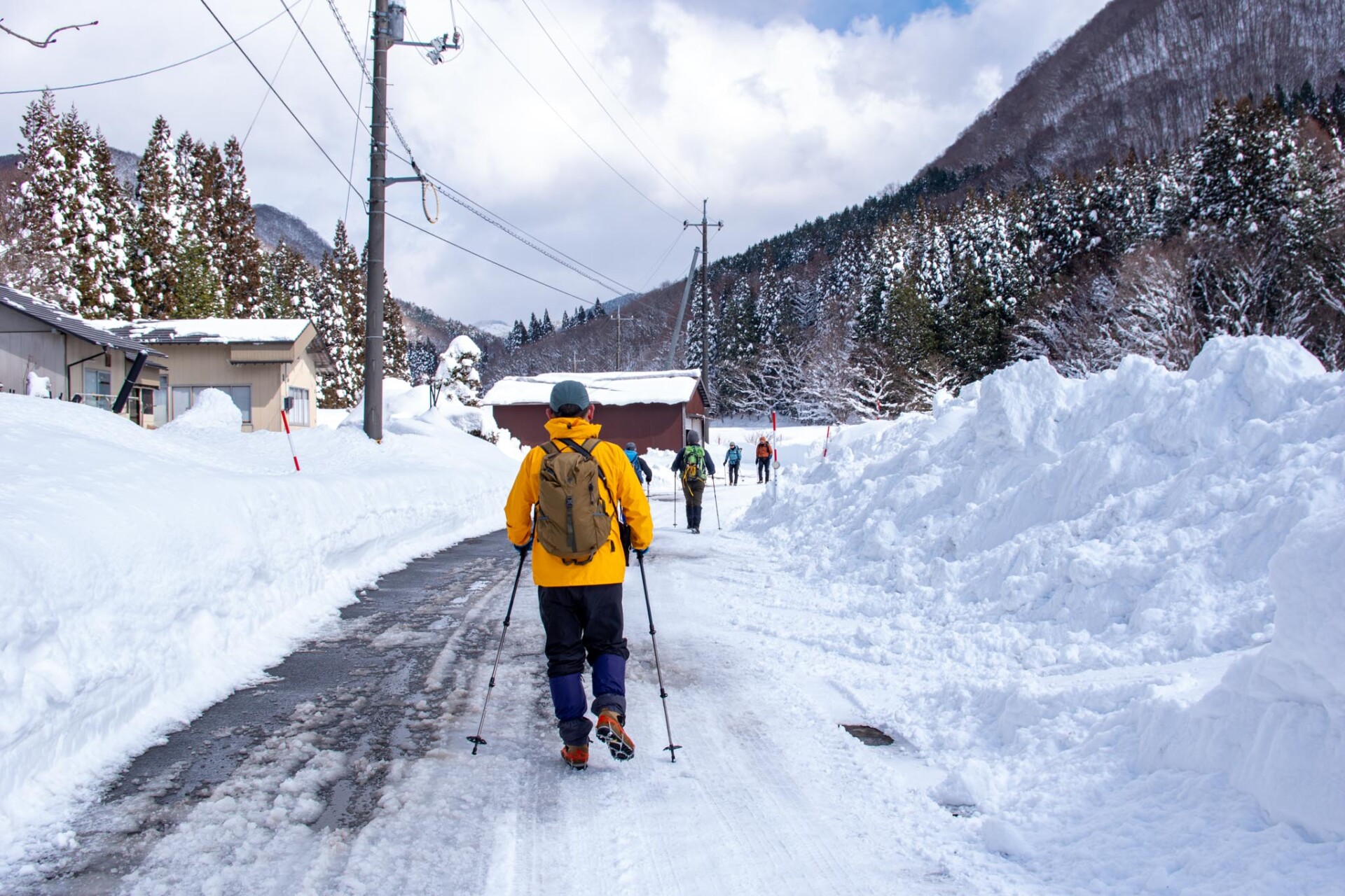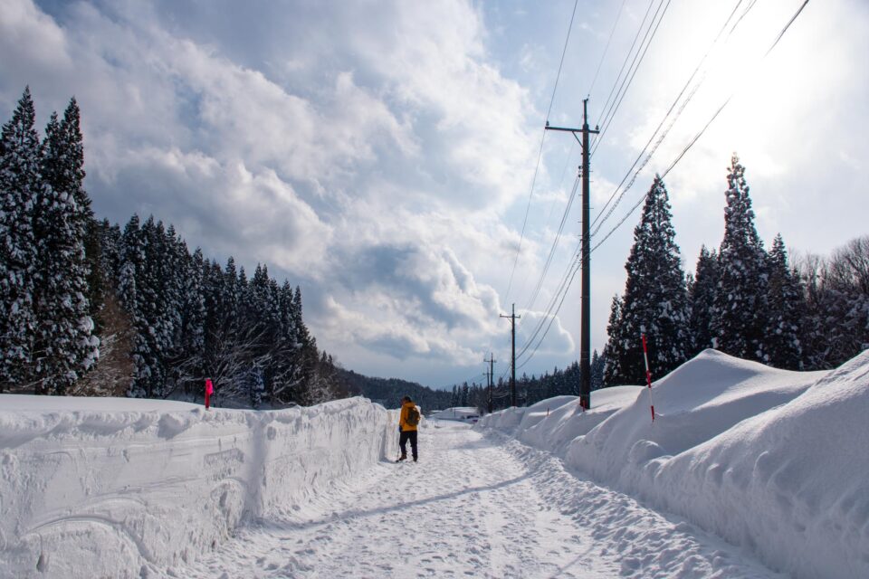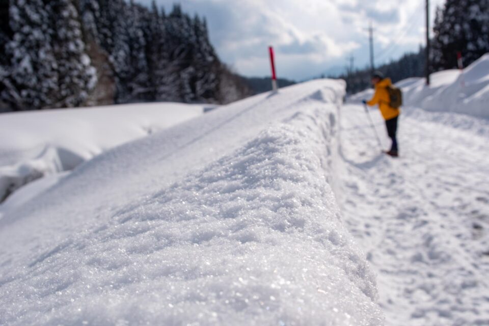 民家が点在している区間は除雪された雪道だから快適に歩けるけど、途中からは全く除雪されていない雪深い道に。