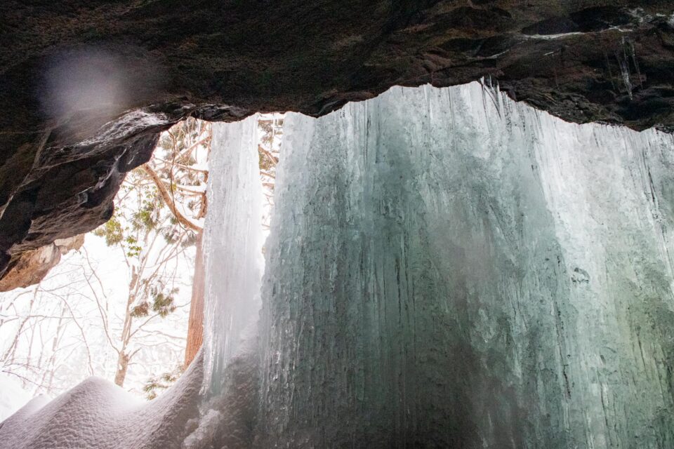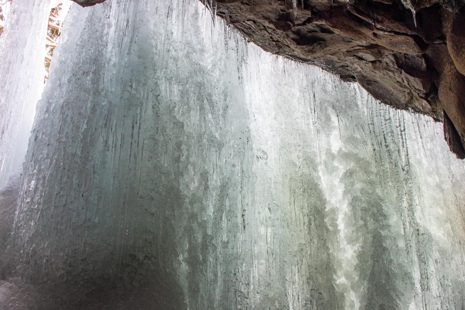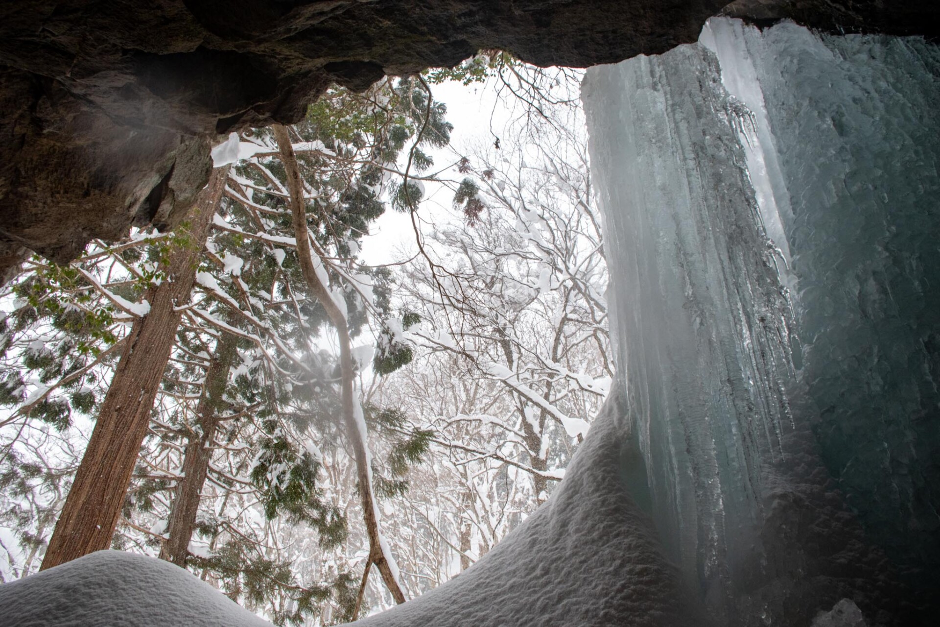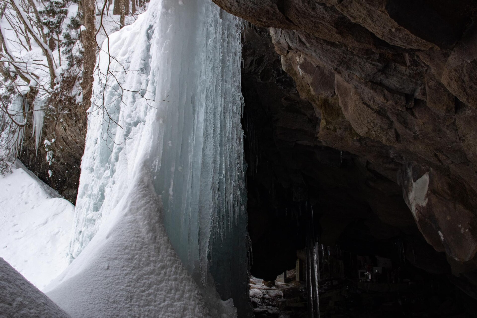 岩井滝は裏見の滝。裏にも入れます。しかも氷瀑の裏側。氷の世界です。