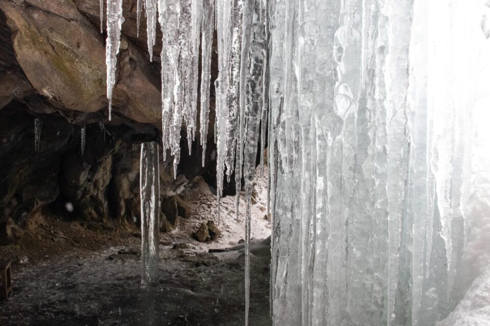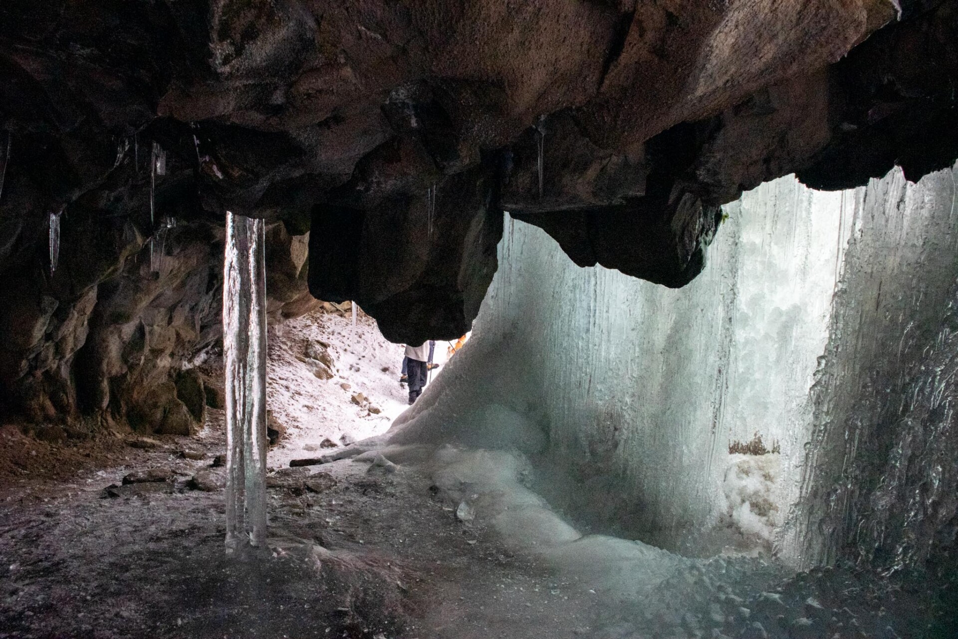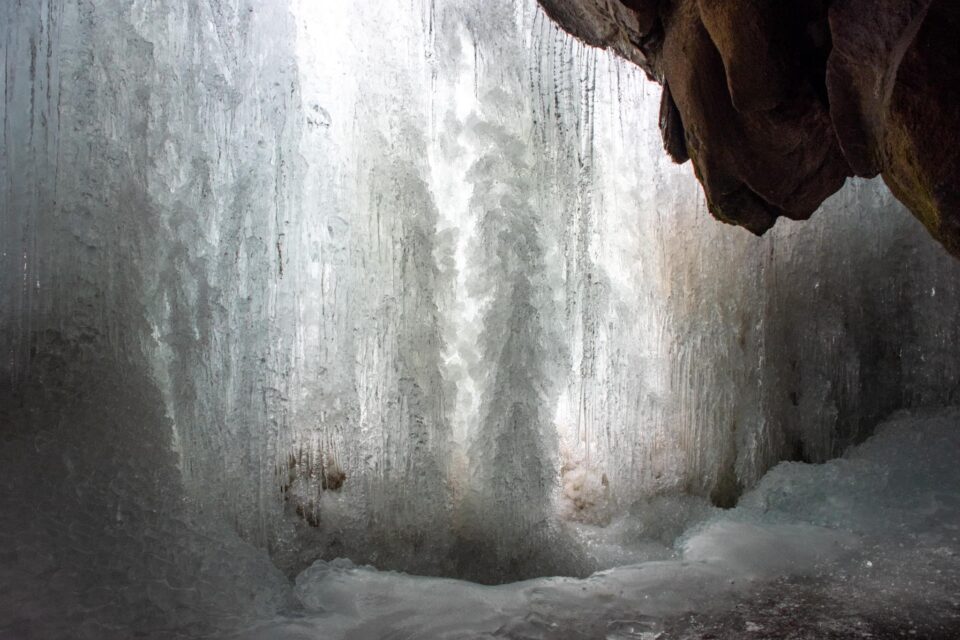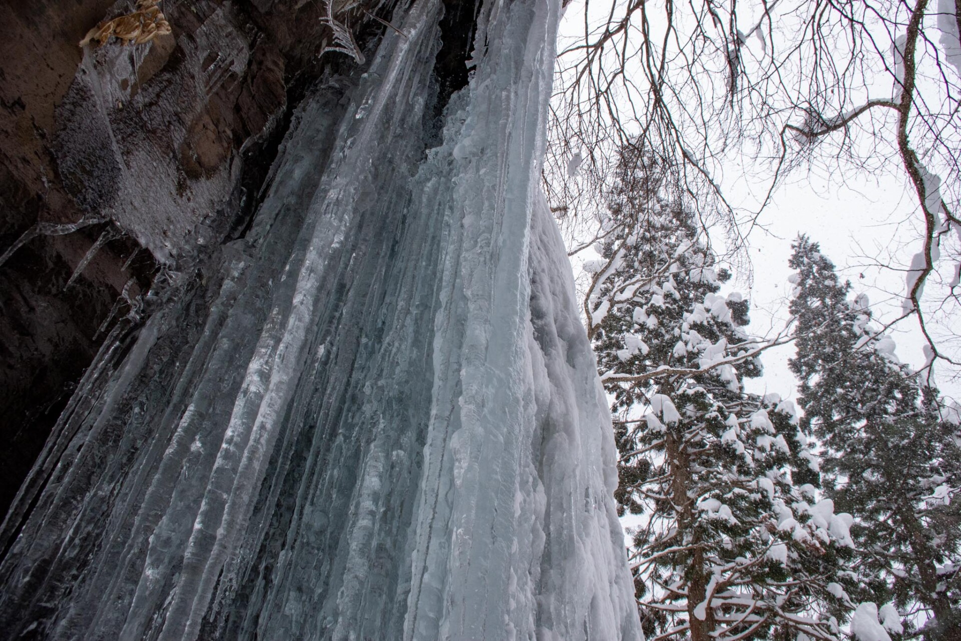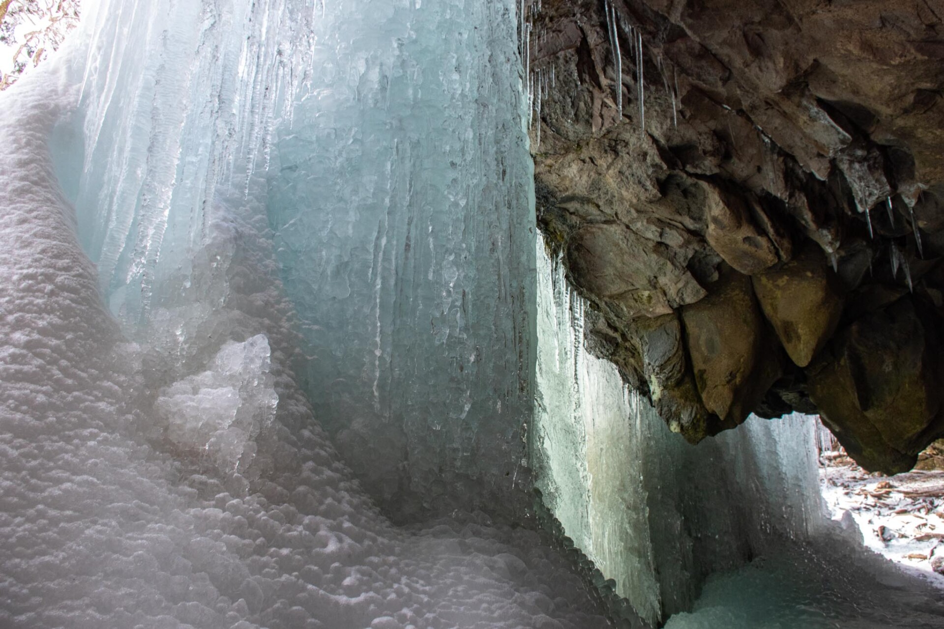 岩井滝は裏見の滝。裏にも入れます。しかも氷瀑の裏側。氷の世界です。